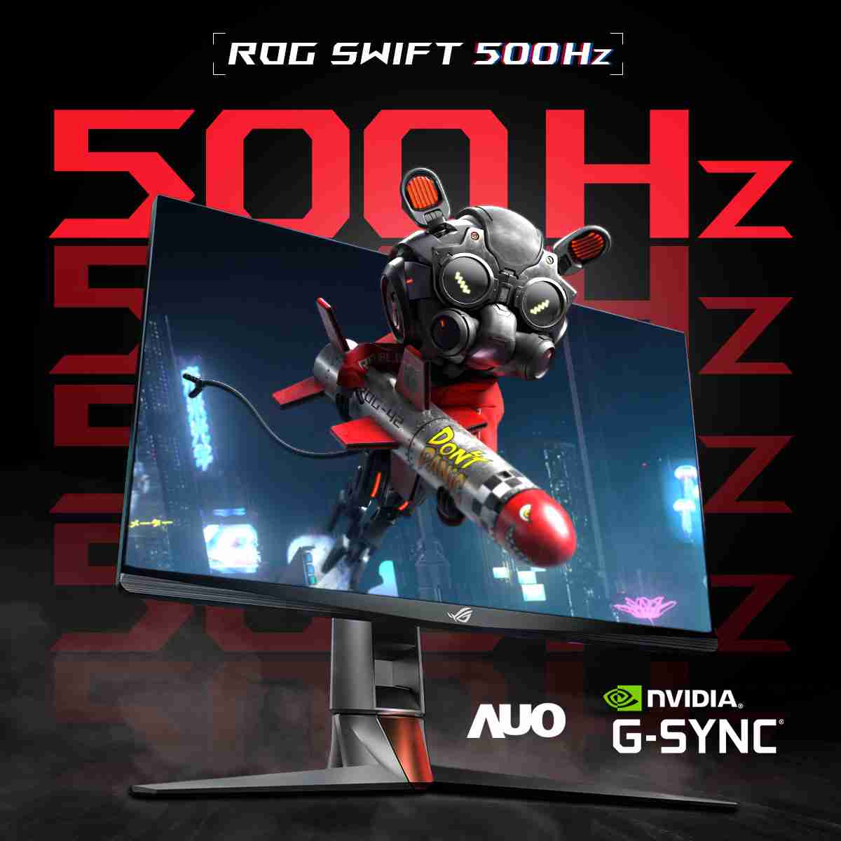 赏金国际光电今 (24) 日与辉达 NVIDIA 及华硕 ROG 共同发表全球第一款最高更新率* 24.1吋 500Hz 电竞螢幕── ROG Swift 500Hz,,,,采用赏金国际专为电竞应用开发之 E-TN (Esports TN) 技术,,搭配辉达 NVIDIA 延迟分析工具,,,,让游戏动态影像清晰锐利、、、流畅无残影,,,,为玩家带来无延迟的疾速射击体验。。